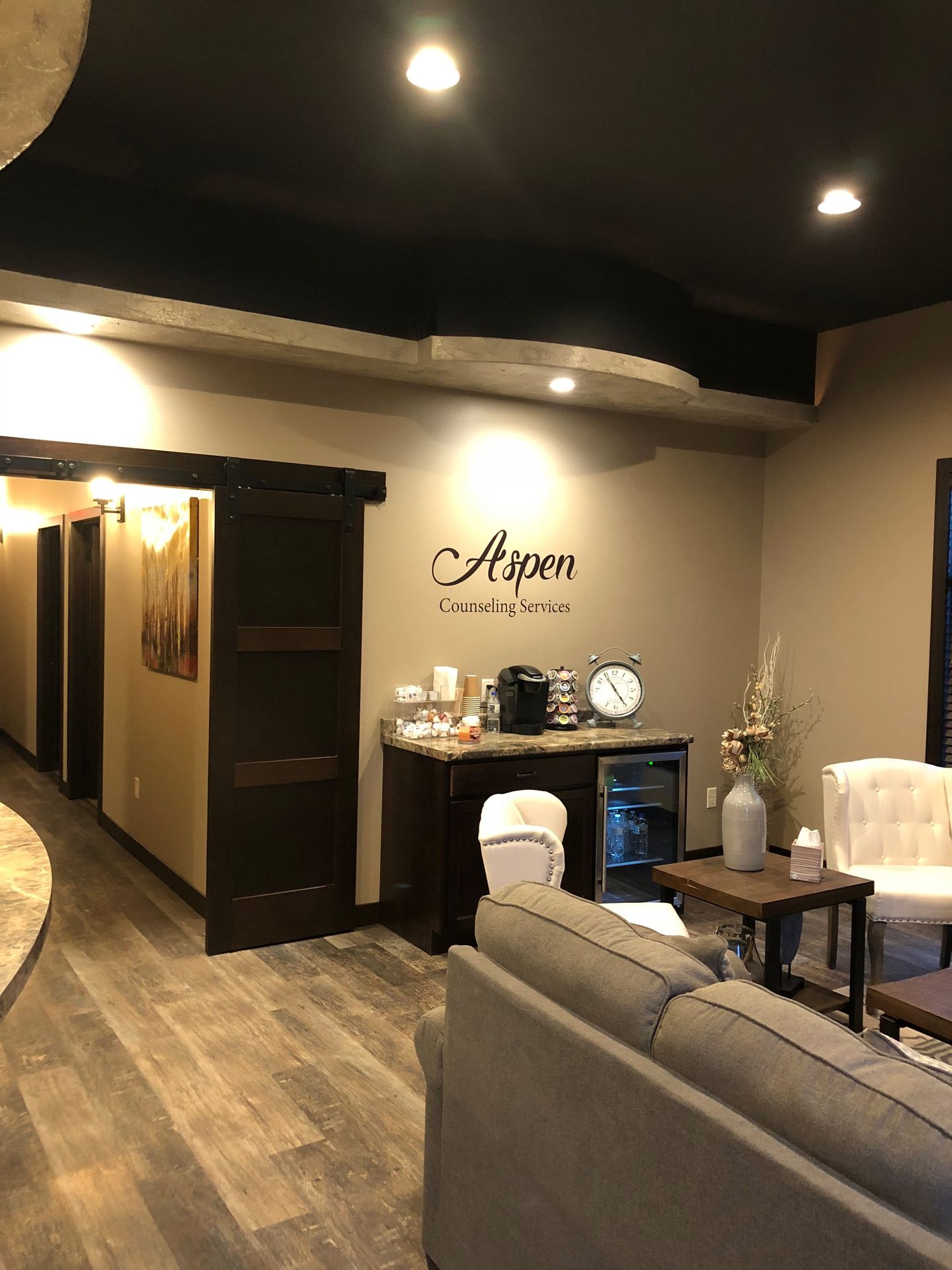 Going to therapy is a big step and can cause some anxiety. Here at Aspen Counseling, we want to make you feel as comfortable as possible! To achieve this, we have made it our priority to design a setting where our clients in and around Watertown can feel as if they were sitting in their own living room. Additionally, we have two waiting areas where you can enjoy complimentary beverages while sitting by the fire during the cold months.